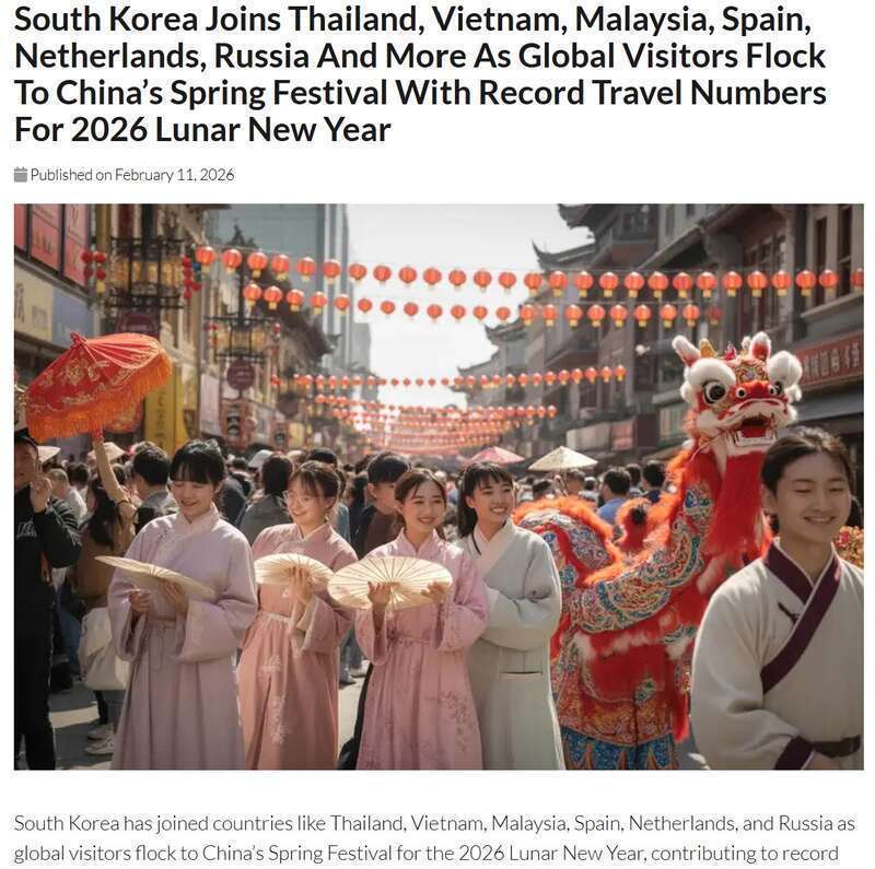报道进一步分析说,得益于地理位置相近,韩国已成为春节期间赴华旅游的重要客源国之一。韩国游客对中国历史文化具有浓厚兴趣,热衷参与包饺子、剪纸等互动式文化体验活动。此外,受历史文化渊源影响,越来越多越南游客选择在春节期间赴华,沉浸式体验逛庙会等节庆活动。越南是世界上少数几个使用农历的国家之一,也是少数几个全国过春节的国家之一。这些沉浸式体验让游客得以感受中国丰富的文化遗产,也为他们在中国的旅程留下了难忘的回忆。